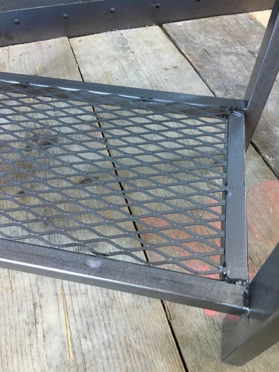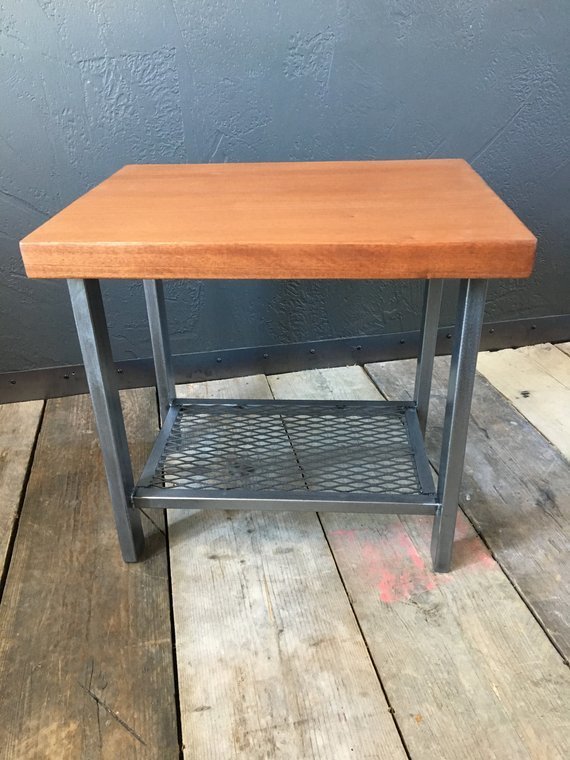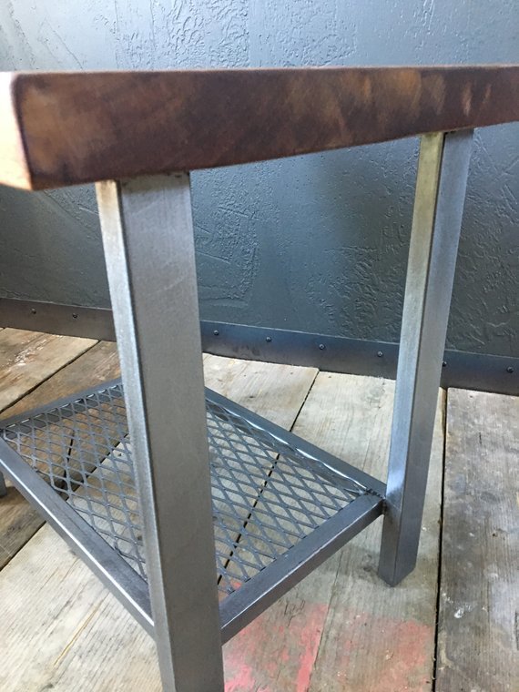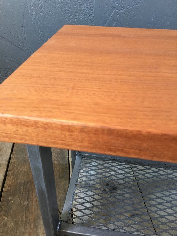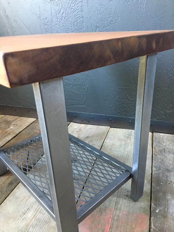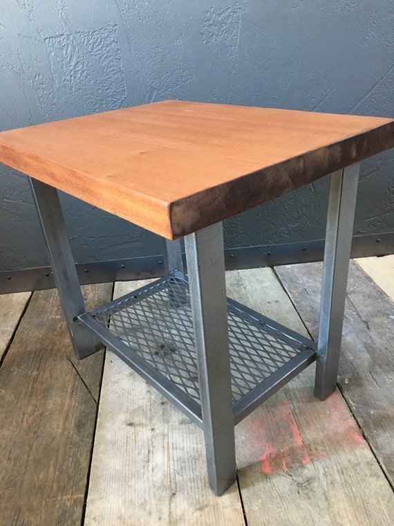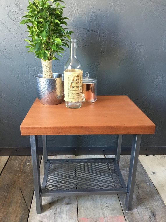 Gorgeous Industrial chic coffee/small table with metal mesh shelf