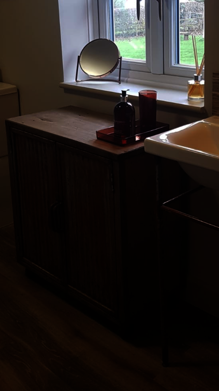 A lovely unique and usual looking bathroom cupboard - as seen in the images.