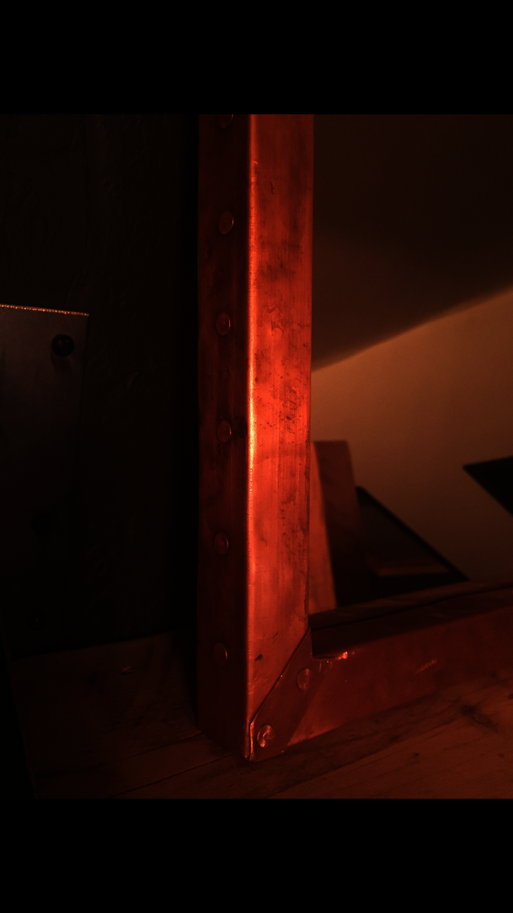 Copper mirror frame with copper nails