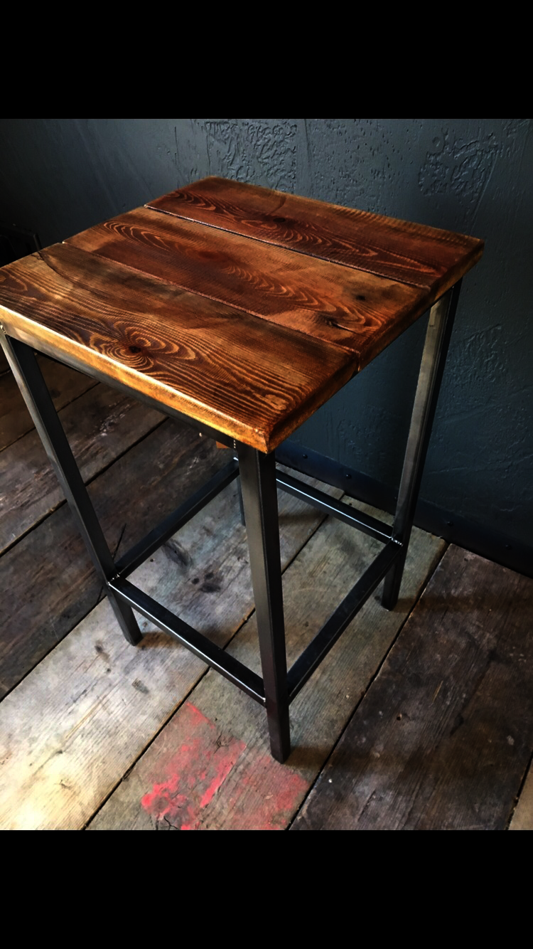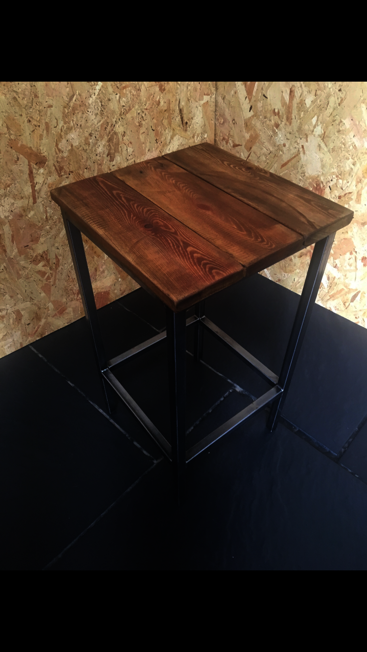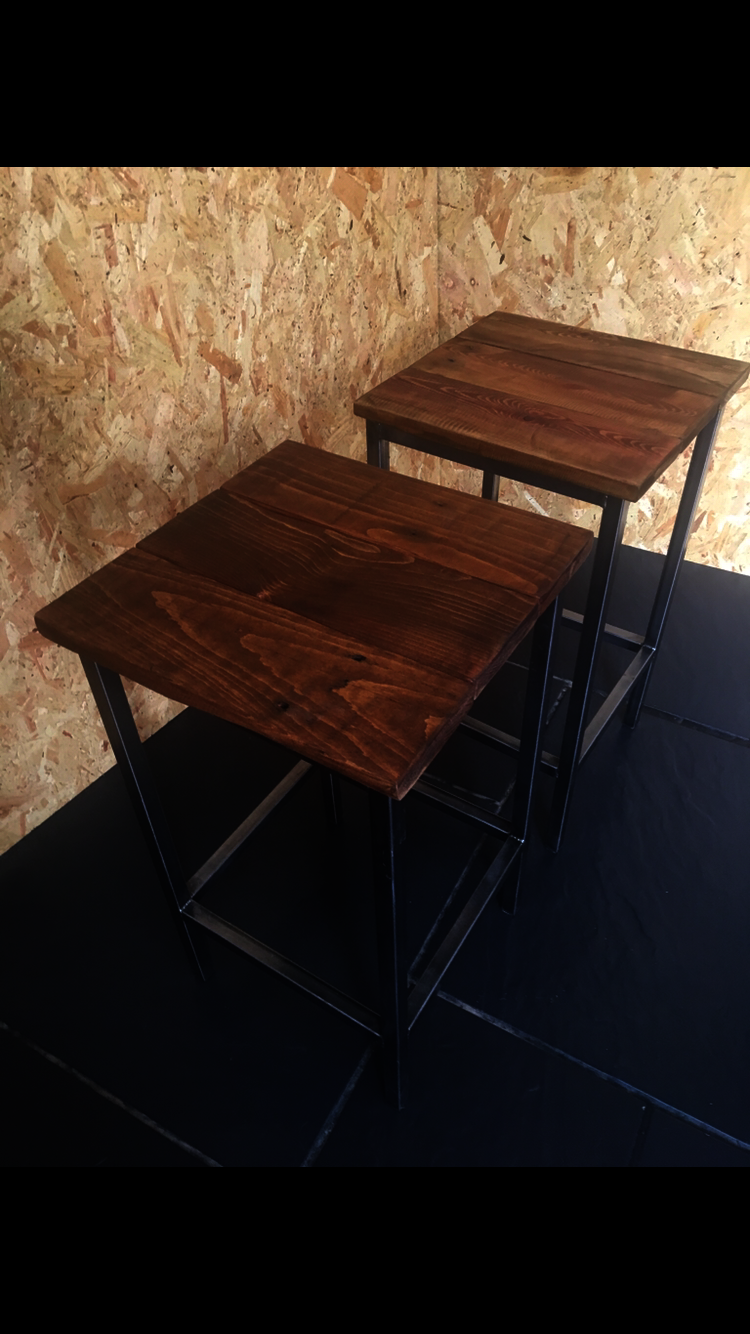 These had a matt metal finish with reclaimed wooden tops, stained and oiled to show the lovely grain. This was a simple and elegant design and was made to match a breakfast bar table.