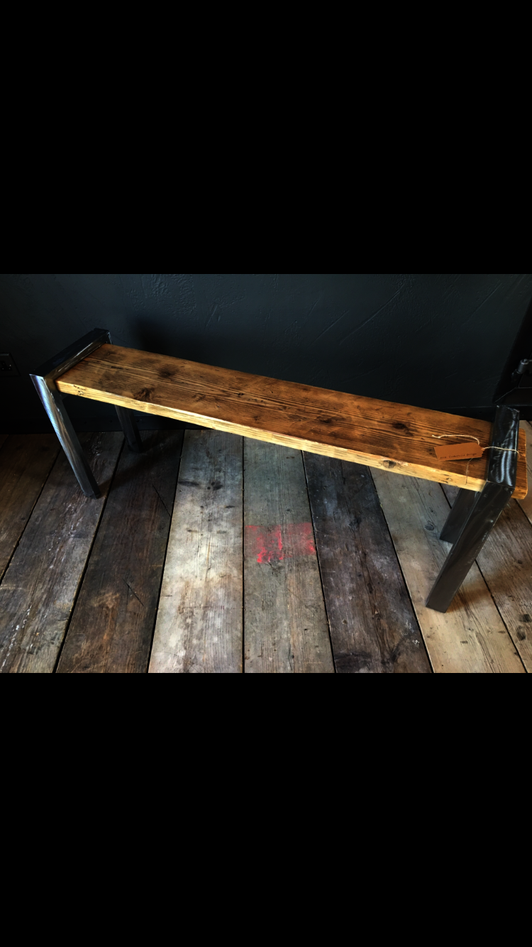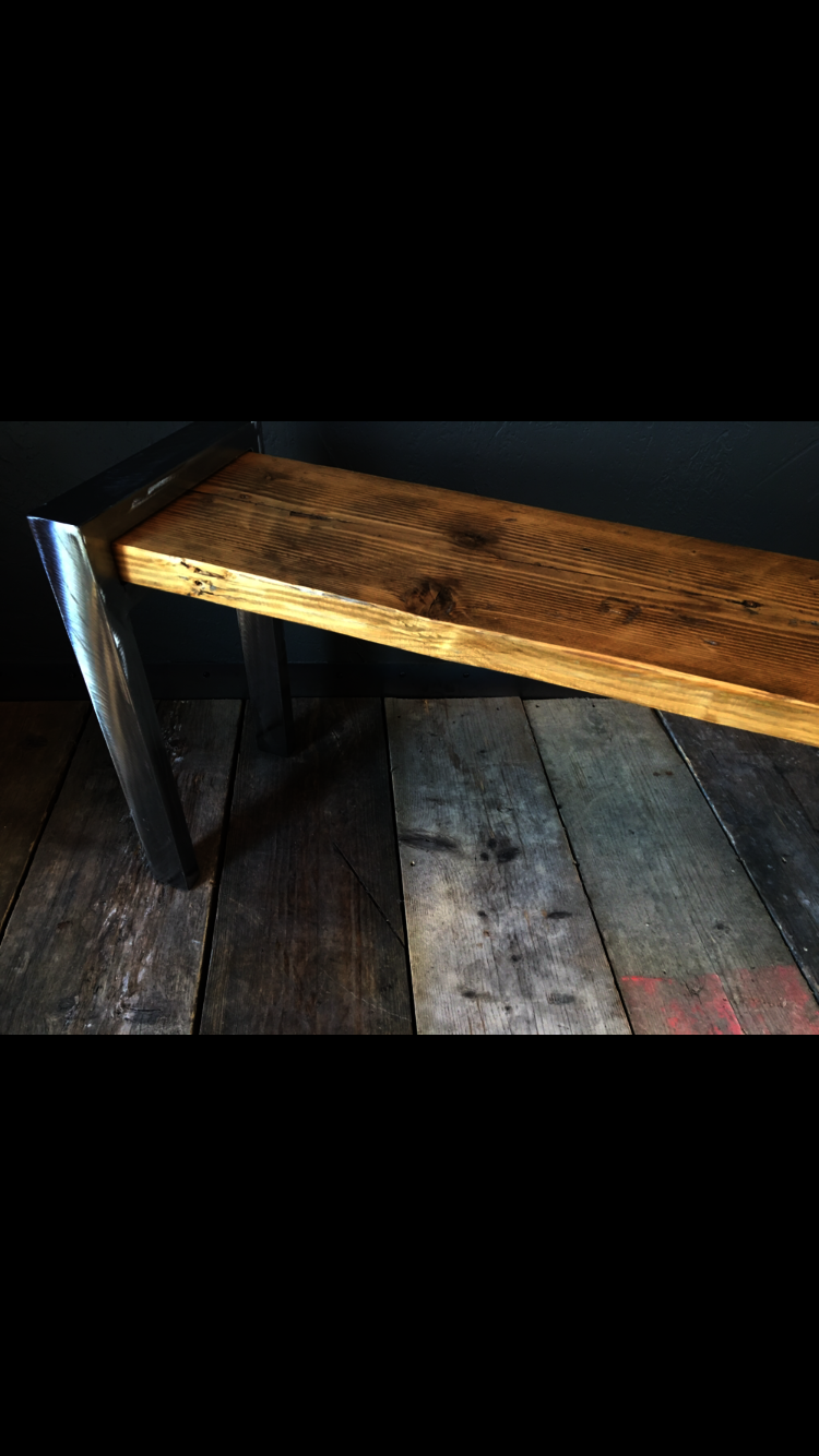 Industrial rustic shiny metal bench