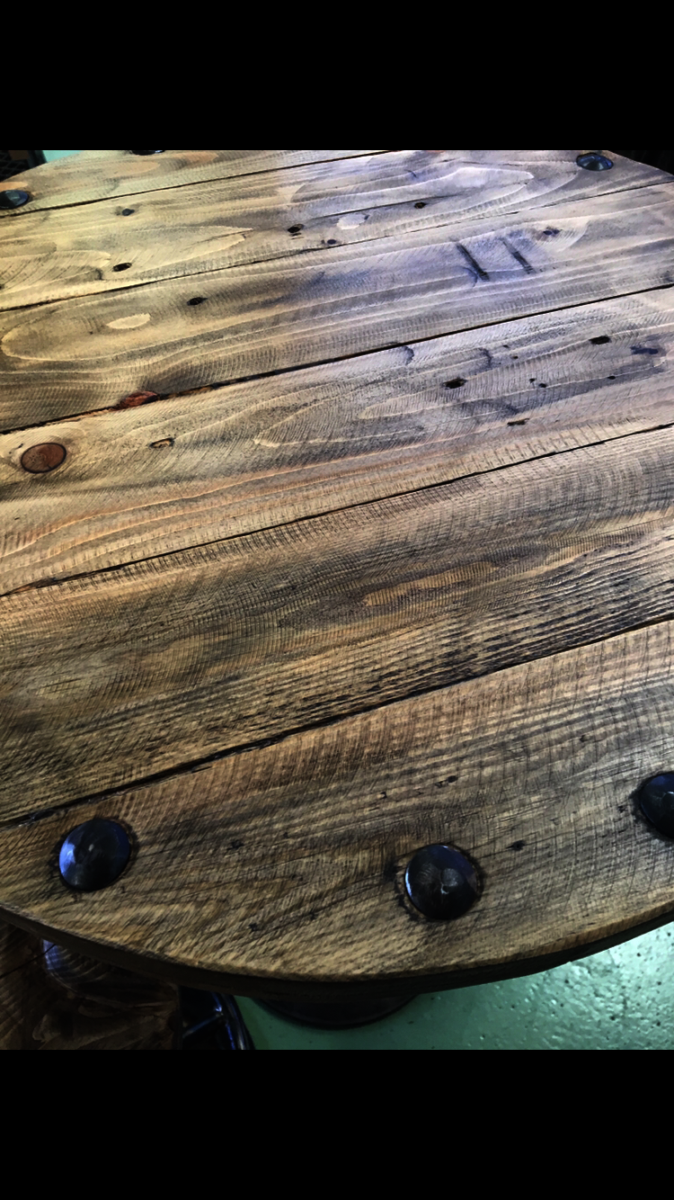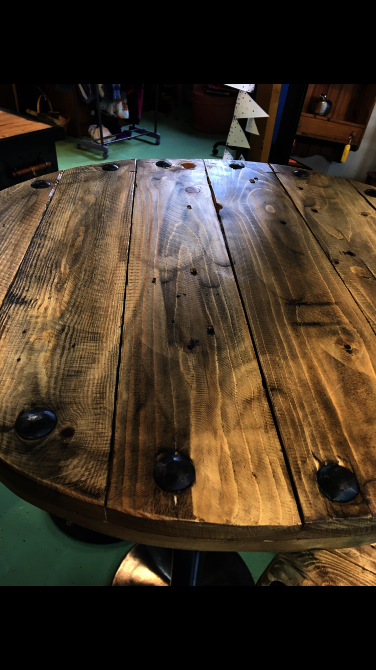We have made and sold a few of sets of these - they have proved very popular. We have used different colour and textures for the metal and the wood finish for each set.