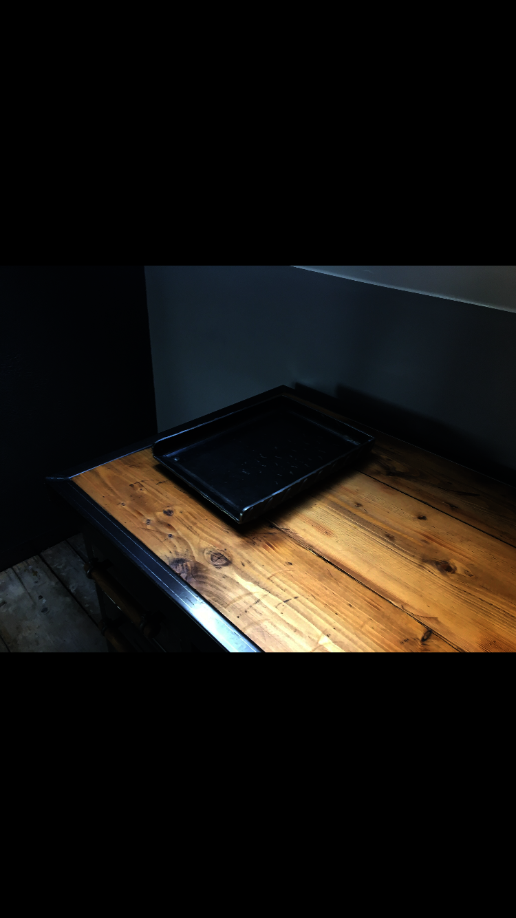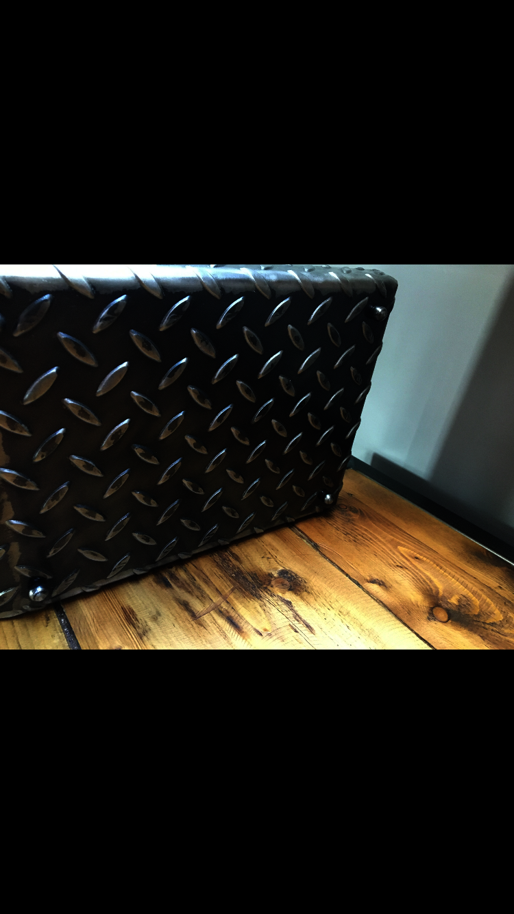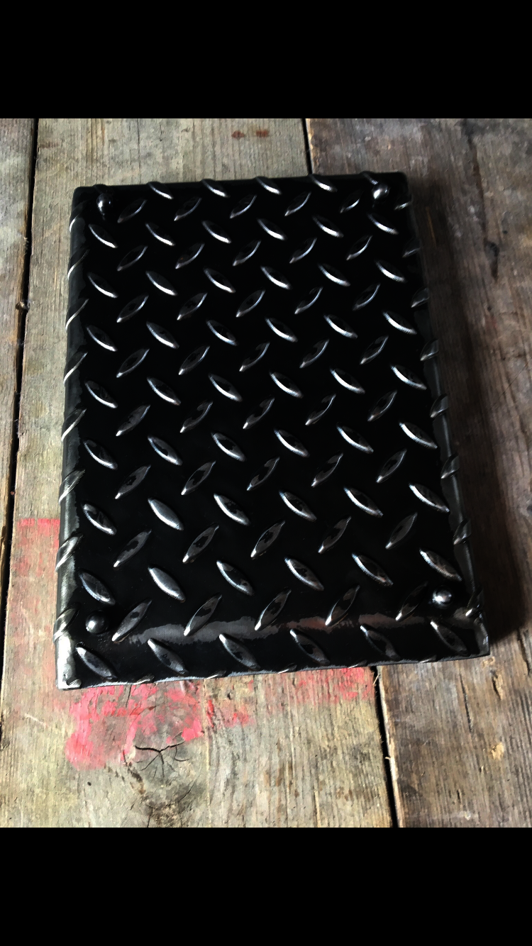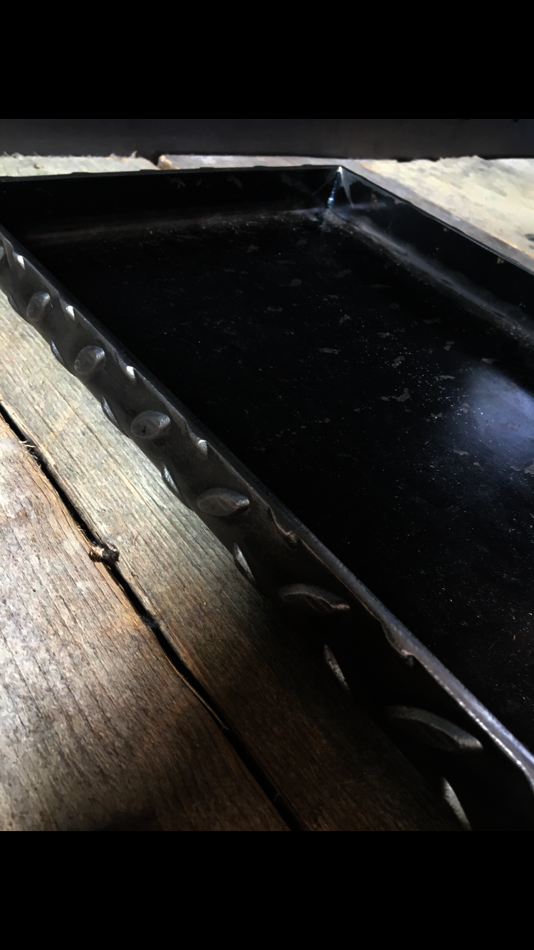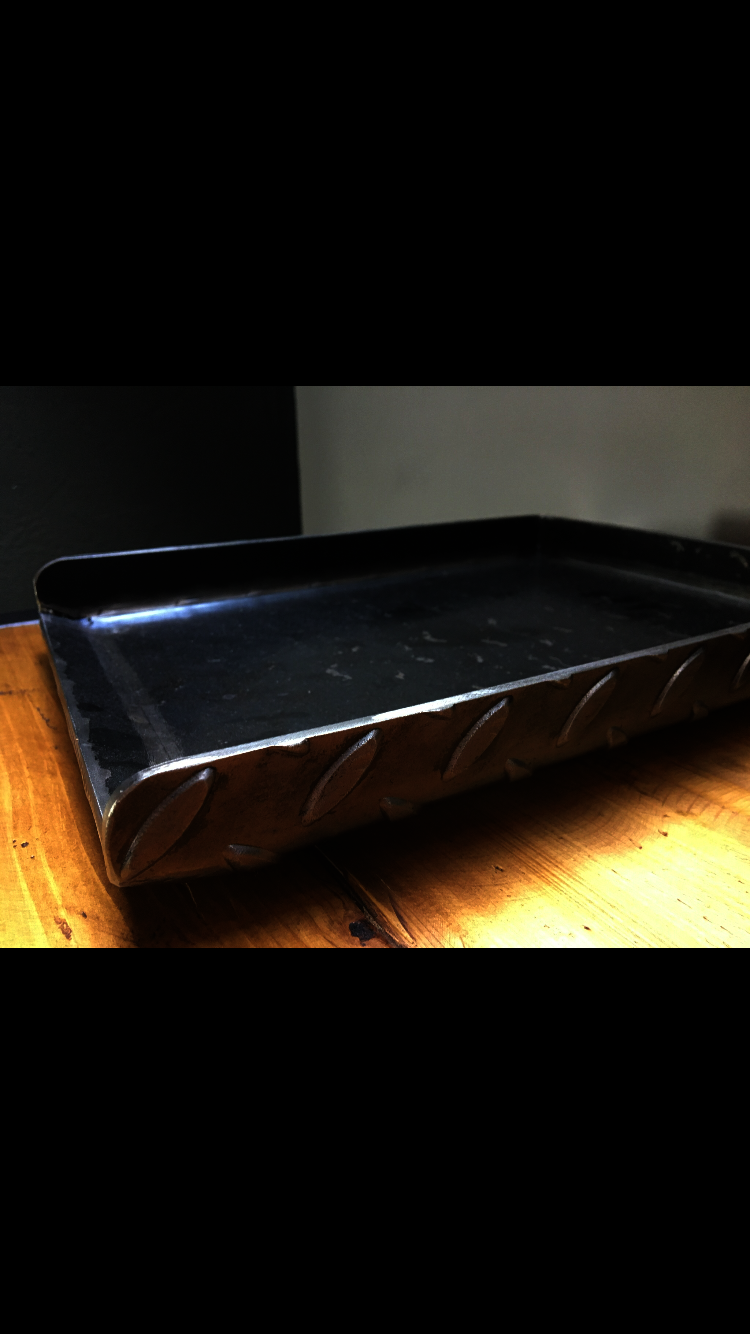 Quirky and unusual industrial metal paper tray, polished and lacquered with ball bearing feet.