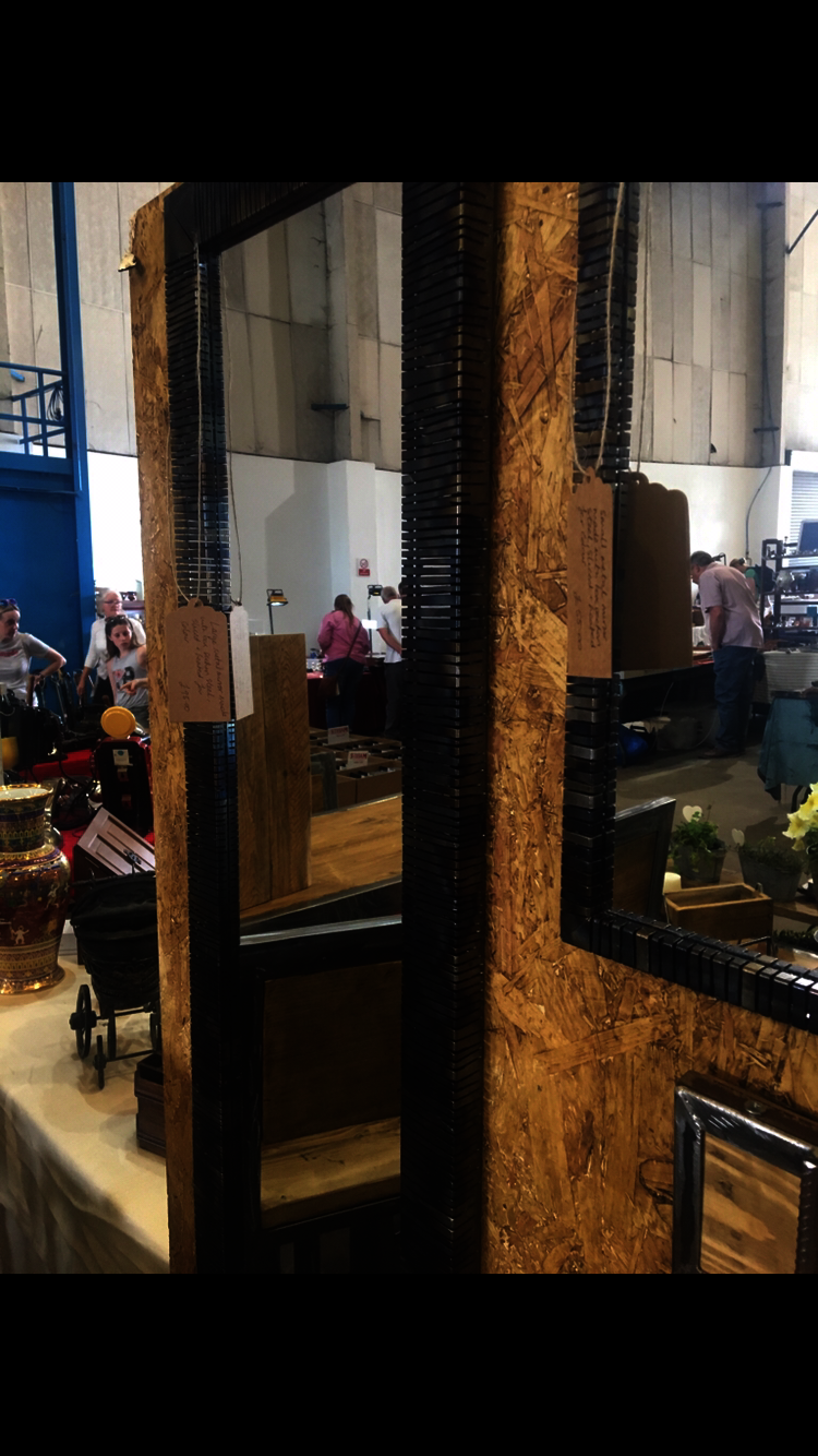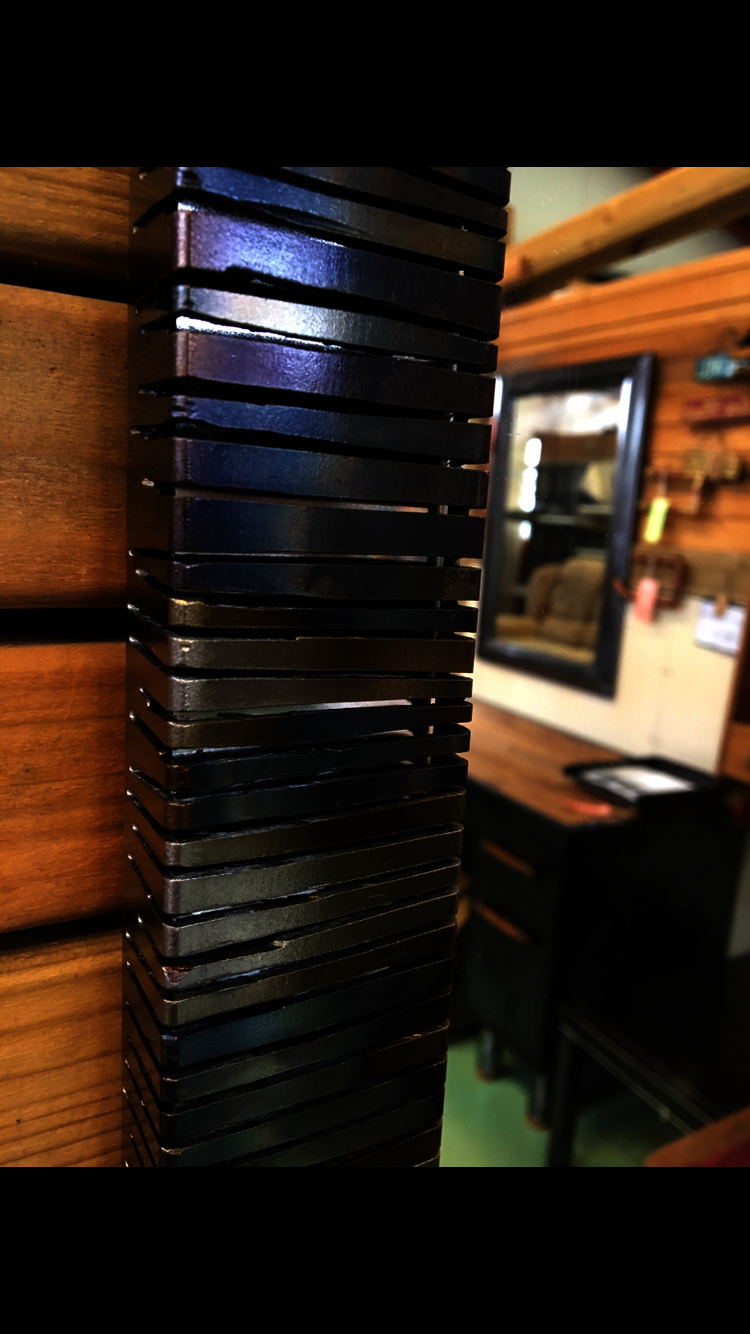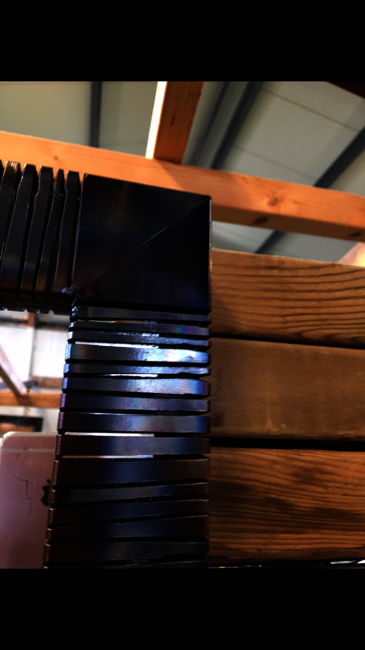 Metal box section mirror frame, randomly sliced with a cutting disc. Finished and heated with a blow torch to create a colourful metal finish. Unique and original. Lacquered.