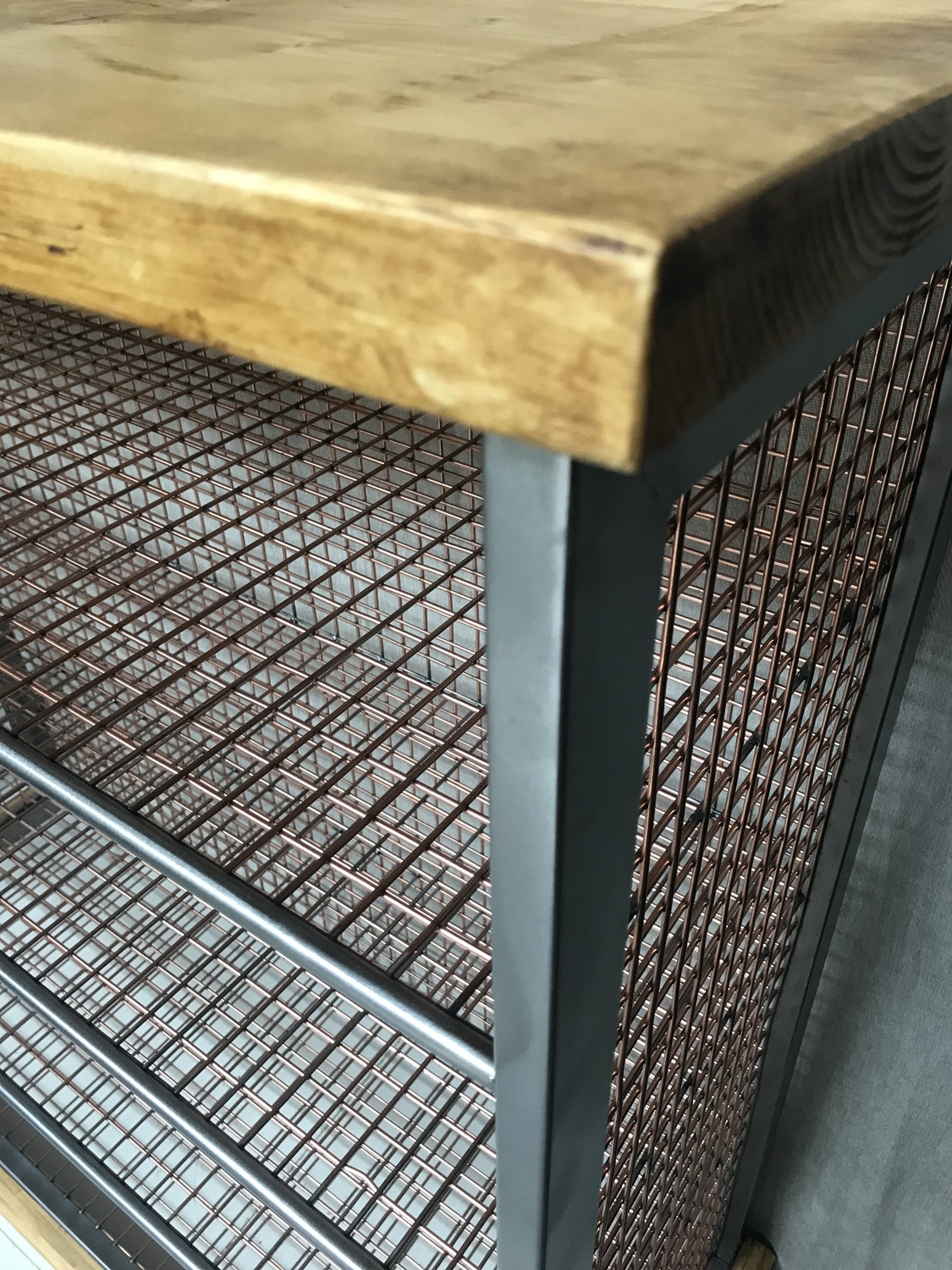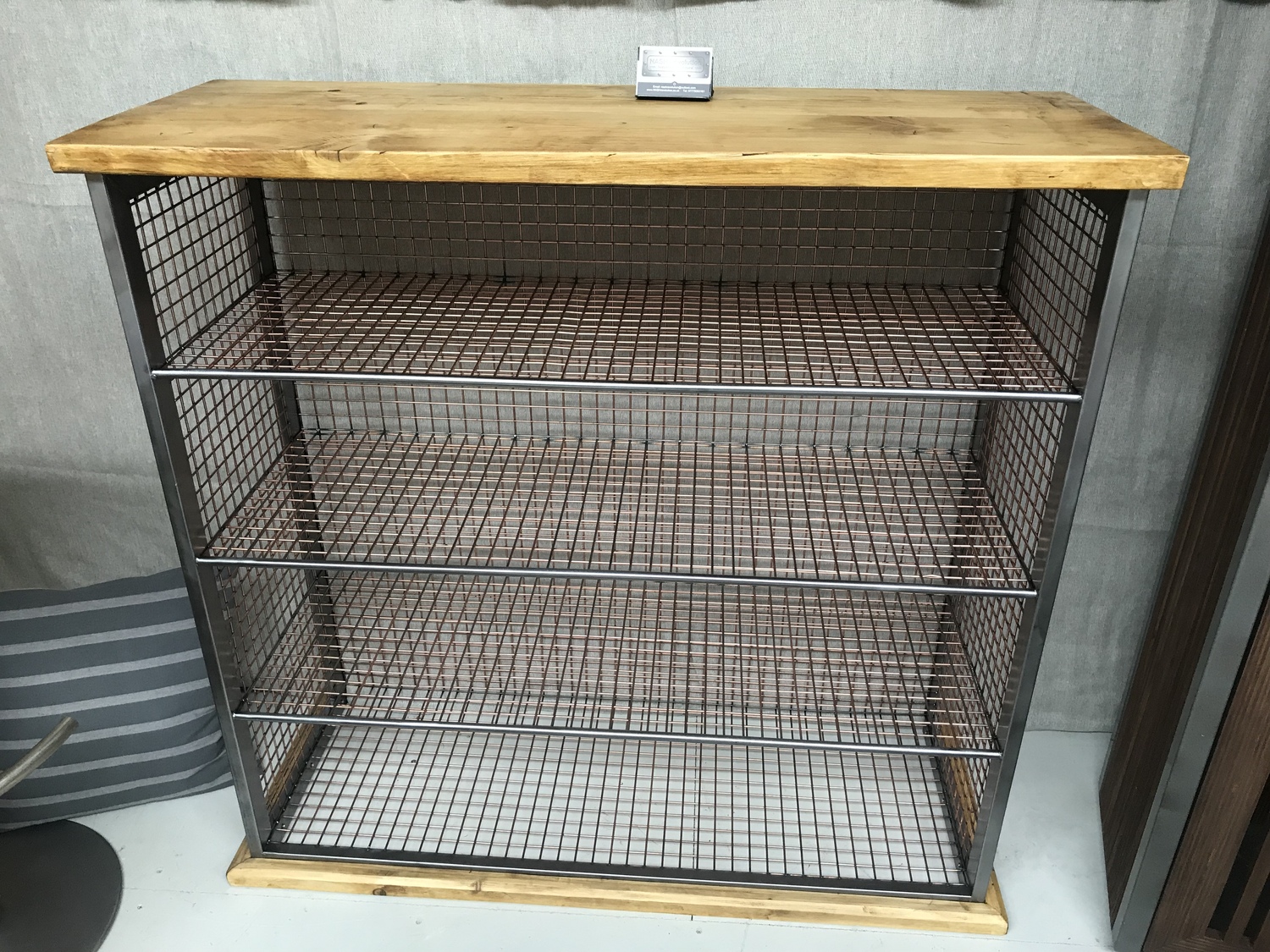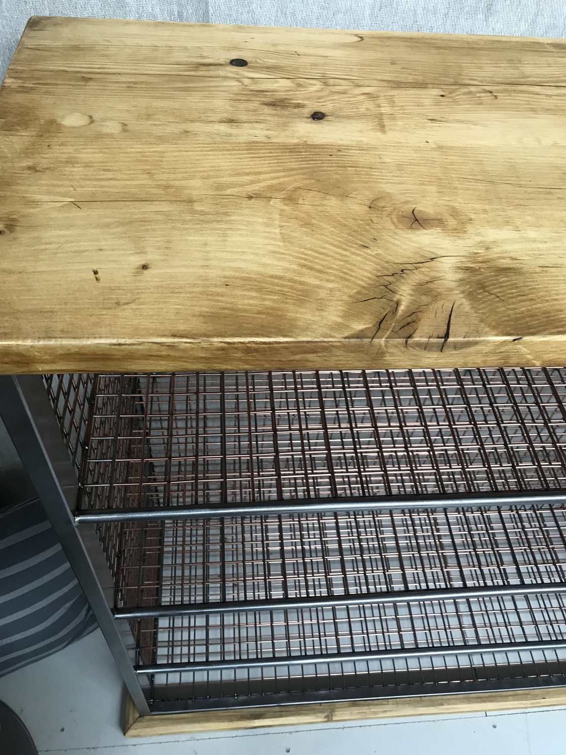 Bespoke unit made from reclaimed wood and handcrafted using metal box. Ideal for using as a shoe rack, in the kitchen for pots and pans or for bathroom or linen storage
