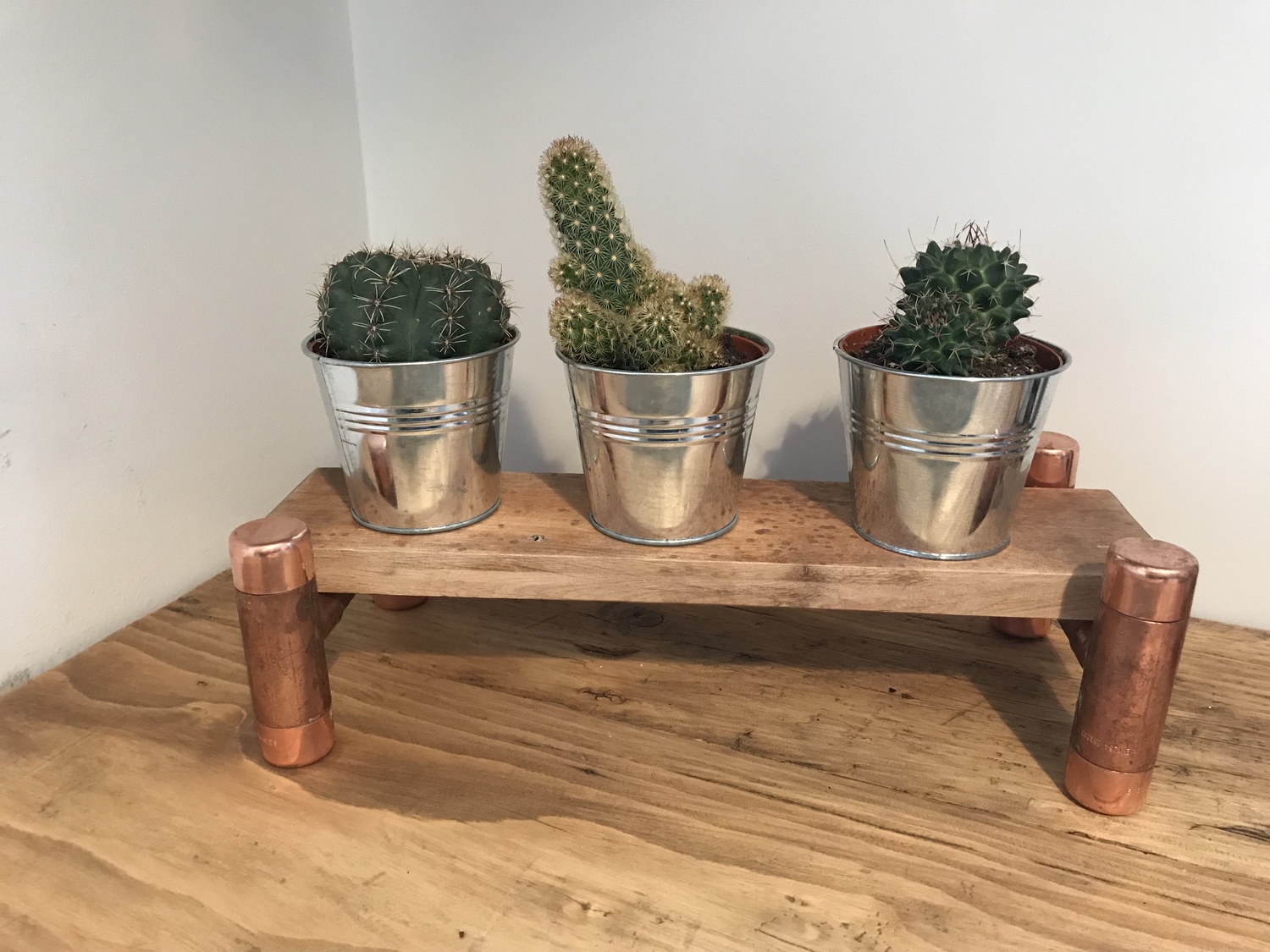 Simple handcrafted rustic plant stand.