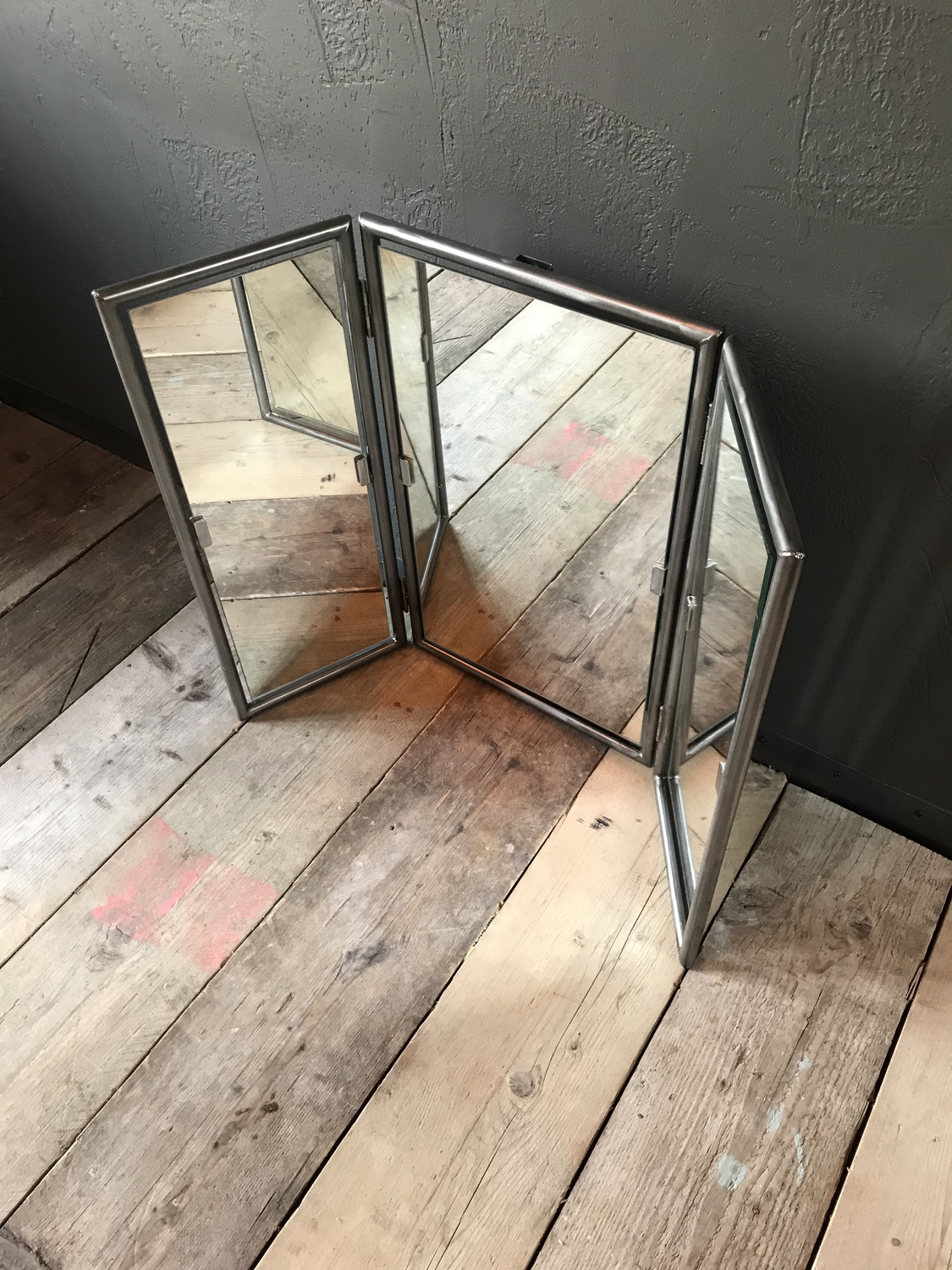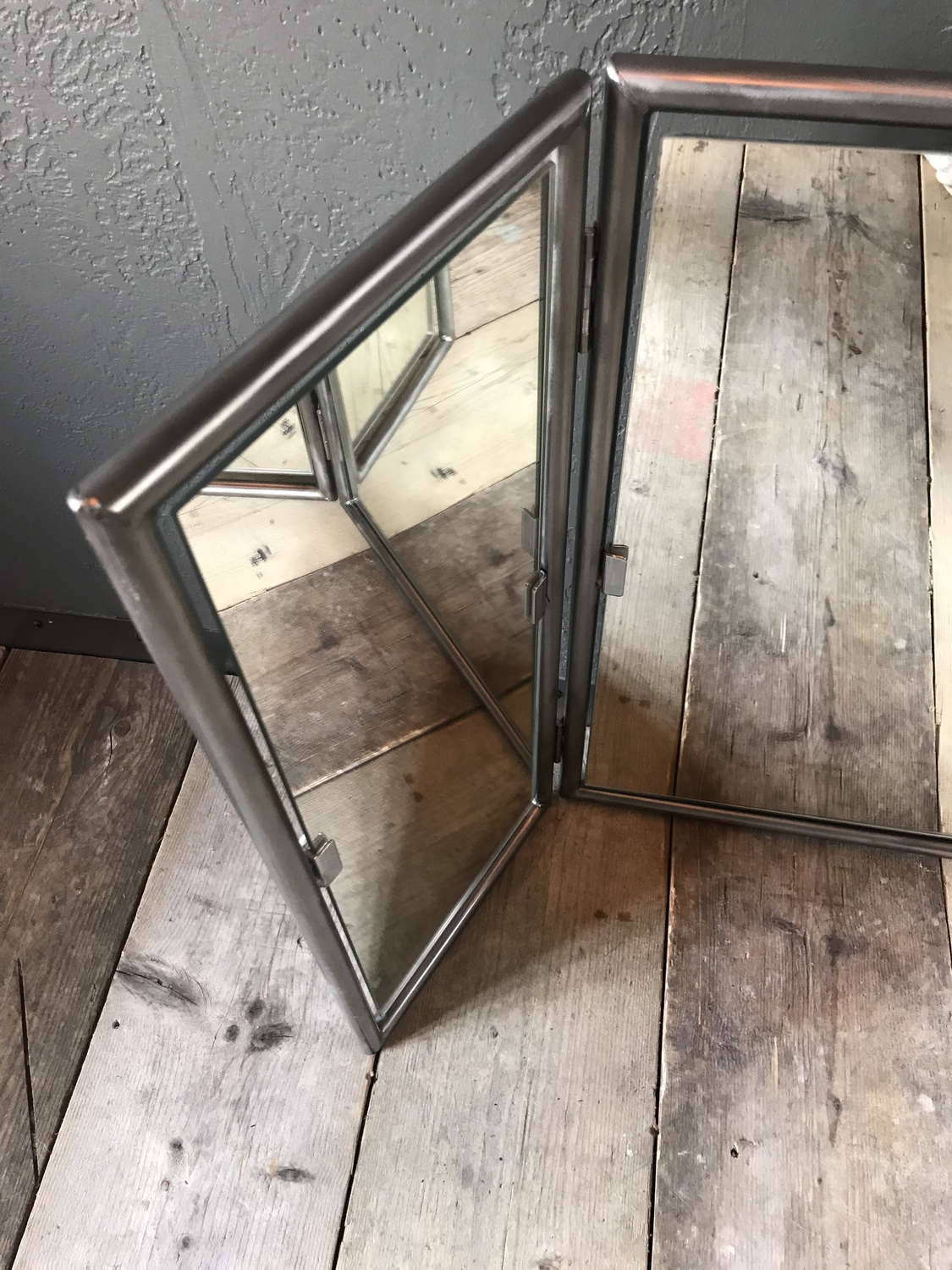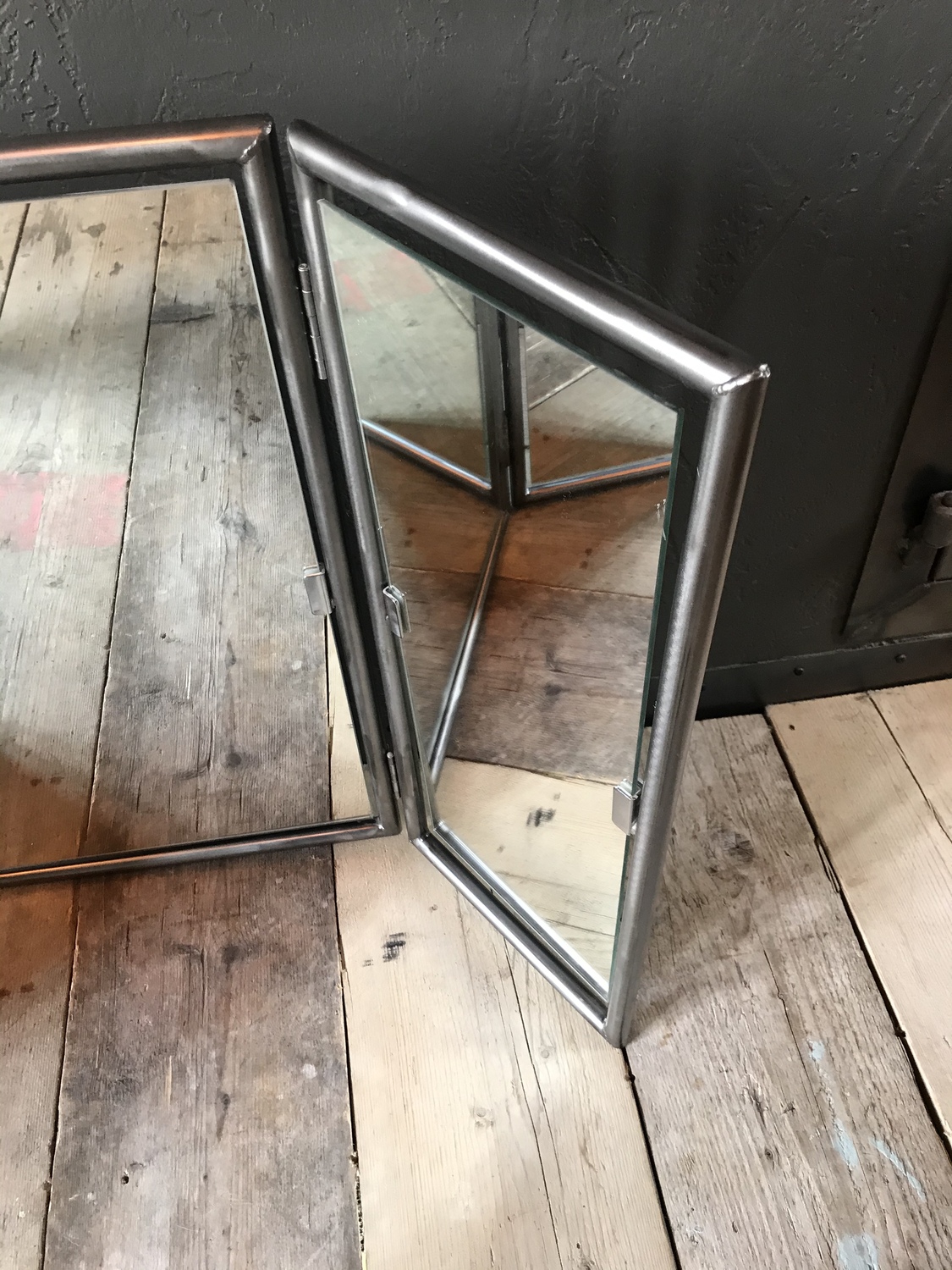 Upcycled triple mirror with handcrafted metal surround