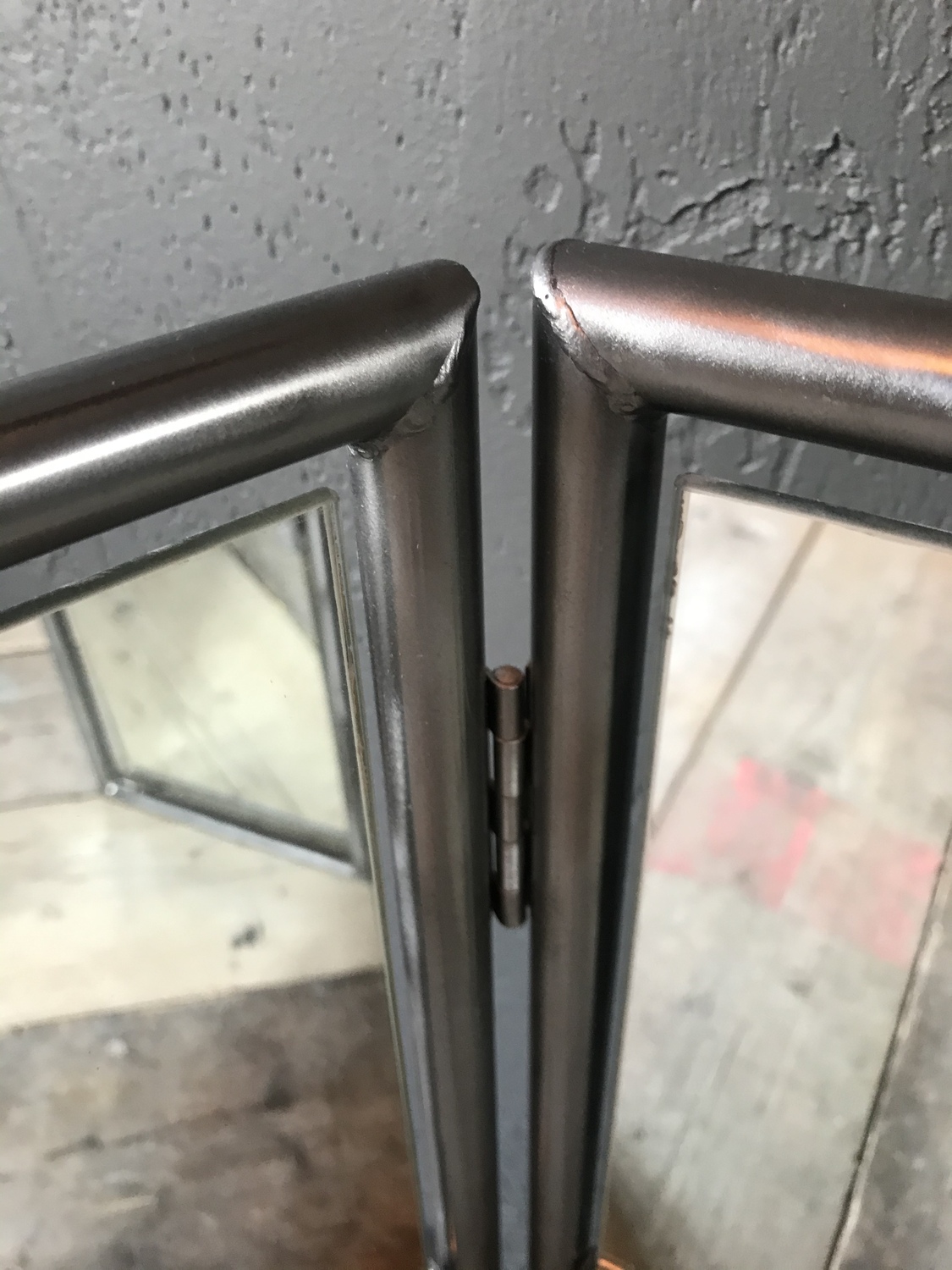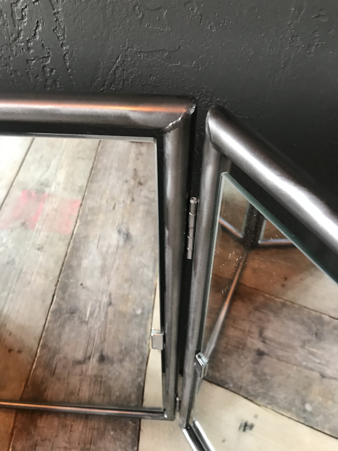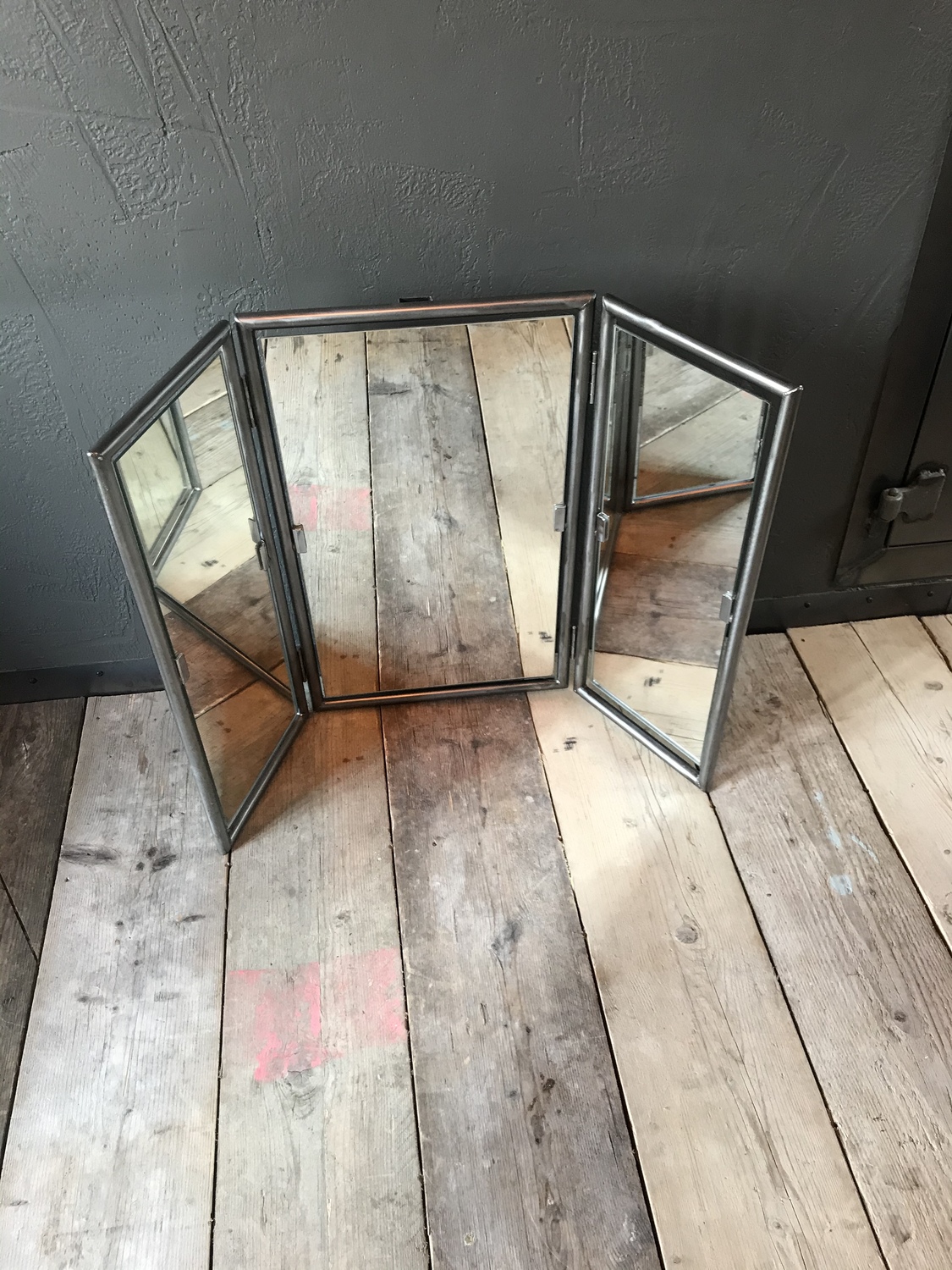 Upcycled triple mirror with handcrafted metal surround