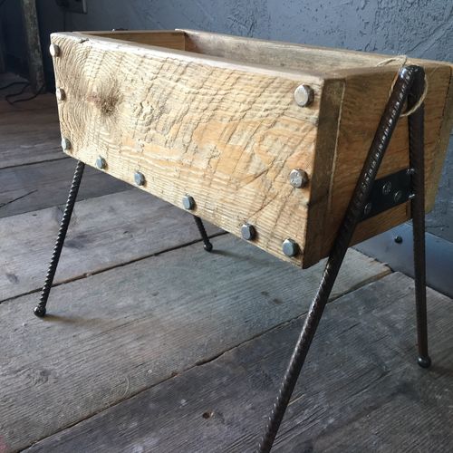 This industrial style planter was made using reclaimed pallet wood timber and reed bar legs with decorative bolts around the edges, to give a unique industrial look.