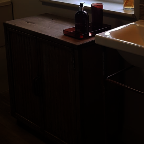 Bespoke bathroom cupboard with rusty doors