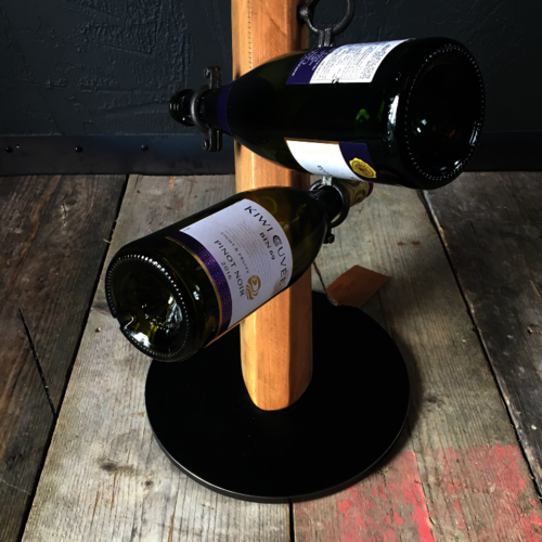 Unique wood & metal wine bottle holder (4 bottles)