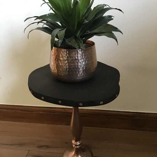 Small copper top table with black painted legs