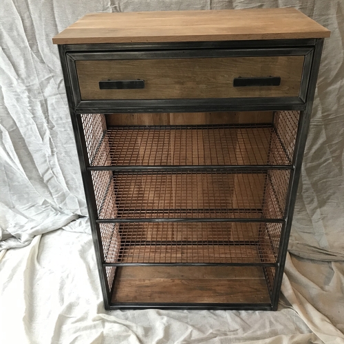 Mesh shelving unit with top drawer